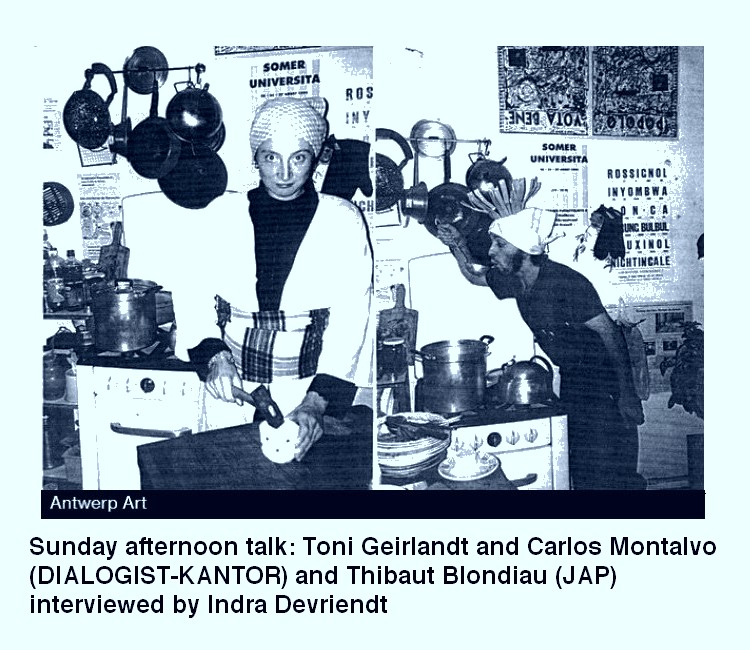 Starring: DIALOGIST-KANTOR / Toni Geirlandt and Carlos Montalvo Jeunesse et Arts Plastiques: Thibaut Blondiau Interviewed by Indra Devriendt (and you).