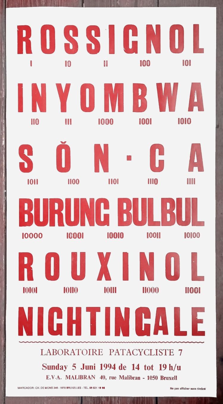 Tags: Laboratoires Patacyclistes Marc Rossignol E.V.A. Malibran typo affiche 1994